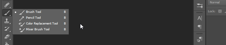 아래 표시된 도구에서 마우스 우클릭을 하면 선택할 수 있는네 가지 도구가 나오지만 이 중에서 첫 번째 것만 사용하면 됩니다.