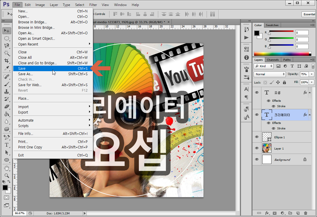 유튜브 영상제작 과정에서 포토샵을 활용하는 부분 중 하나인 유튜브 채널의 프로필 사진을 만들어 보도록 하겠습니다.