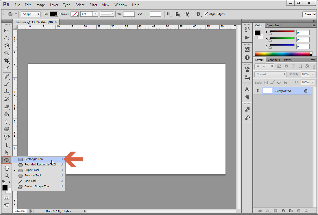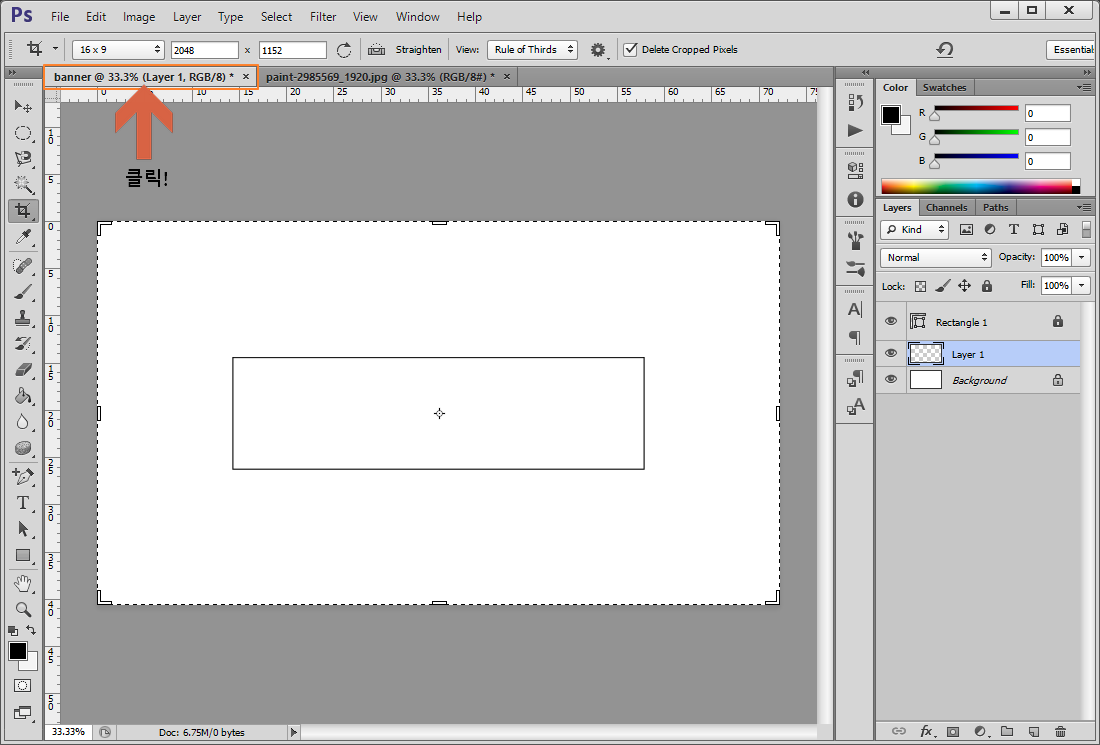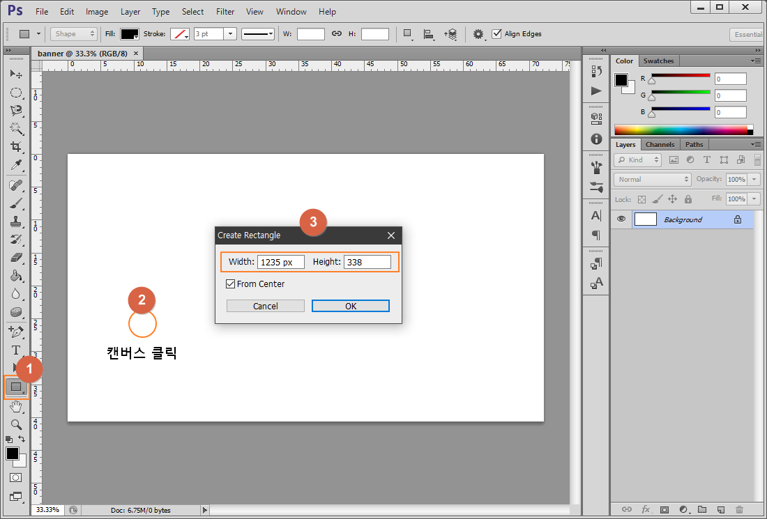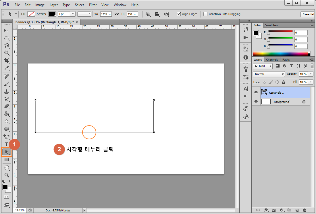 ① Rectangle Tool(사각형 도구) 선택된 상태 유지
