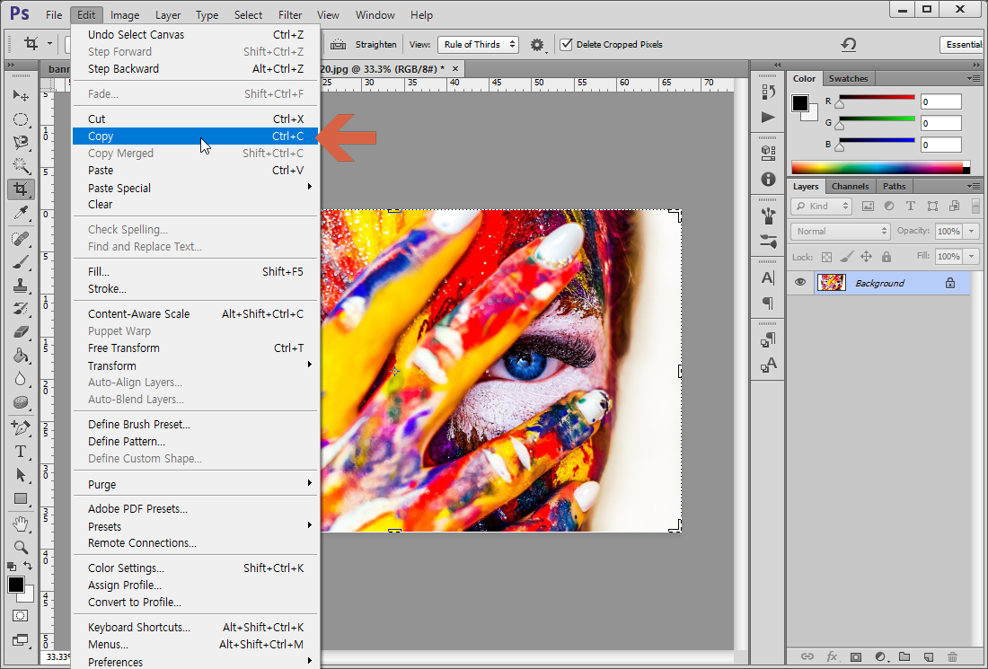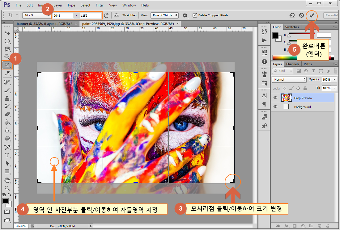 ① Crop Tool (자르기도구) 선택
