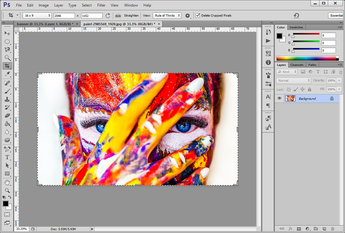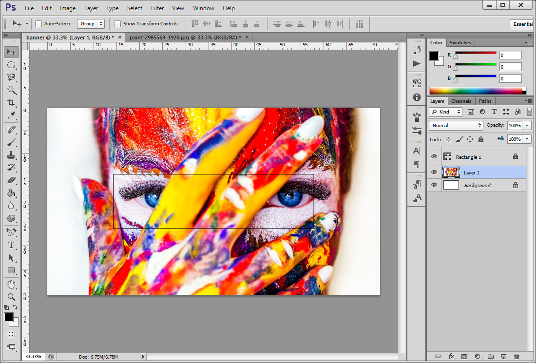 자르기 도구로 자른 사진을 배너 캔버스로 복사하는 과정입니다.