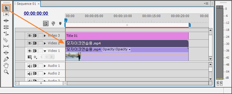 Video 3 트랙의 타이틀을 선택합니다. (Selection Tool / 선택도구 사용)