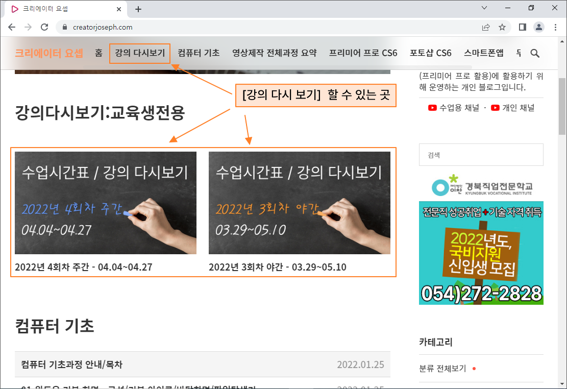 - 강사 블로그 '크리에이터요셉'에 접속 (지금 접속중인 블로그)